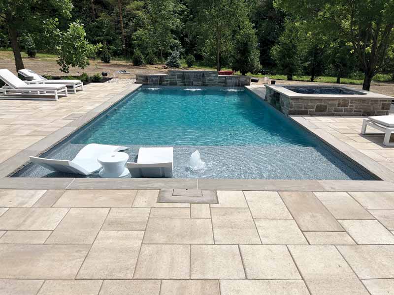 The system is run using two variable-speed pumps (VSPs), a cartridge filter, a 300,000 British thermal unit (BTU) heater, and an automation system which controls the pool, water features, and lighting.