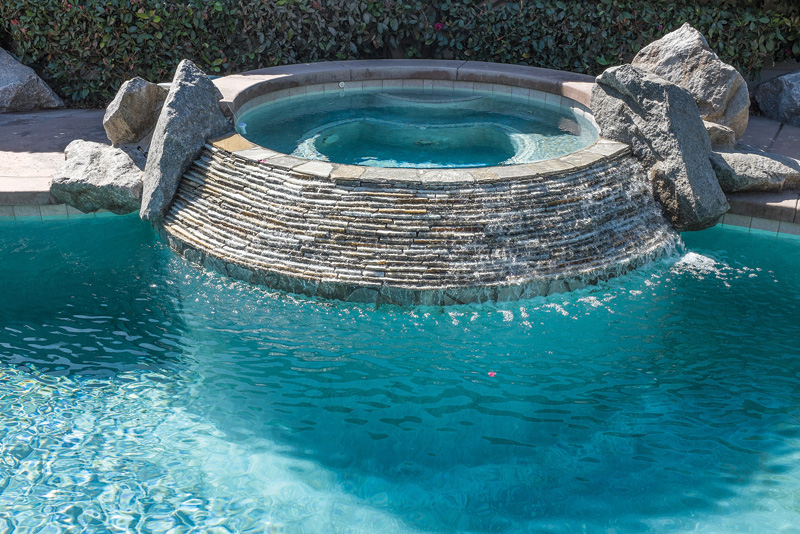 Elaborate water features such as fountains and waterfalls, or even small details, can enhance the esthetic and experience of a swim spa or hot tub.
