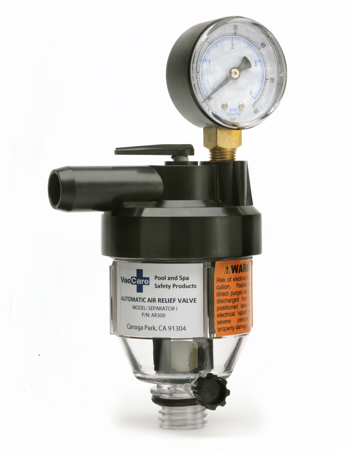 The Automatic Air Relief Valve AR300 provides immediate release of entrapped air inside a pool filter. This eliminates the presence of compressed air, which prevents the water from being fully engaged with the filtration media.