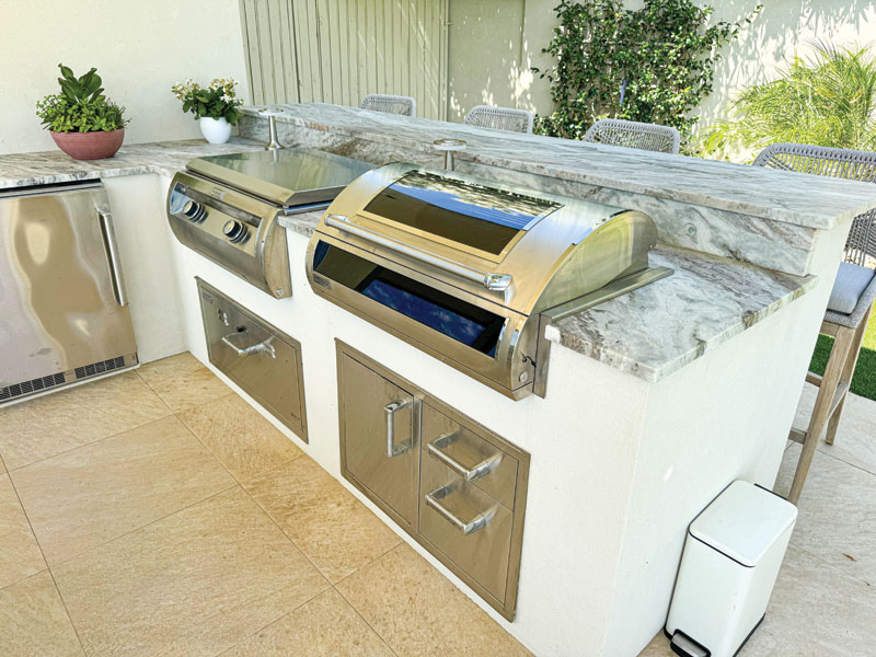 Investment in the home’s outdoor living spaces has accelerated ever since the pandemic. Homeowners continue to rethink how they enjoy and use their backyards—pools, hot tubs and saunas, gaming and entertainment areas, and high-end kitchens. A luxury kitchen that complements the pool and other backyard amenities provides new opportunities to enjoy the outdoors.